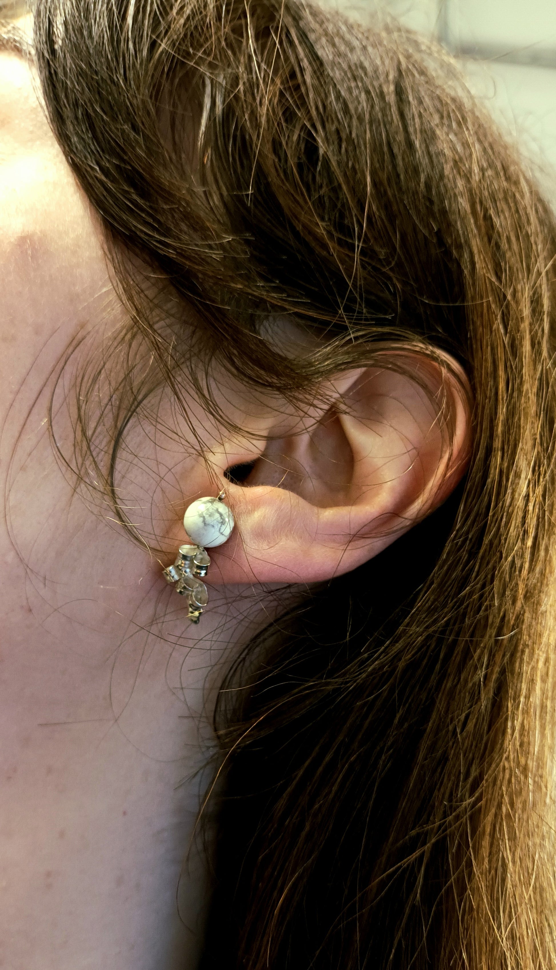 Introducing the elegant Ilsa earrings. A one of a kind pair created by upcycling sterling silver butterfly backs, in a cheeky play of elements. Featuring two beautifully marbled jasper gemstones, they are a discreet showstopper. Perfect for everyday wear and for that special occasion too, they are so versatile you could never go wrong choosing them for a special gift. And being handcrafted in recycled sterling silver, these sustainable earrings are a totally guilt-free treat.