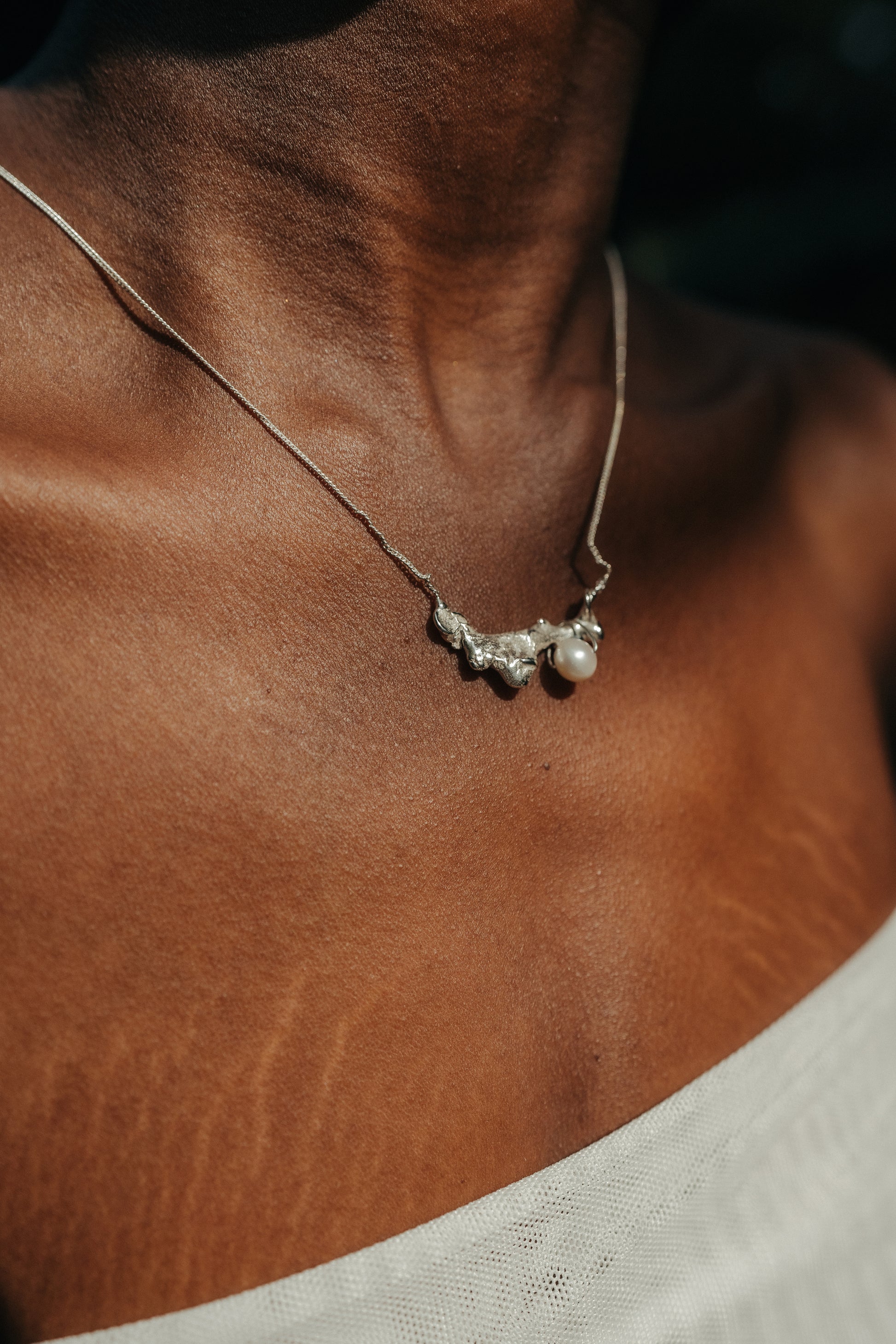 The Ilynore necklace is the timeless handmade jewellery piece you needed. With a textured pendant carefully crafted in copper and silver for an organic, molten look, and a delicate freshwater pearl to adorn it, this jewel is versatile and edgy at the same time. Finished with a light silver chain, it will add a subtle focal point to your daily style.