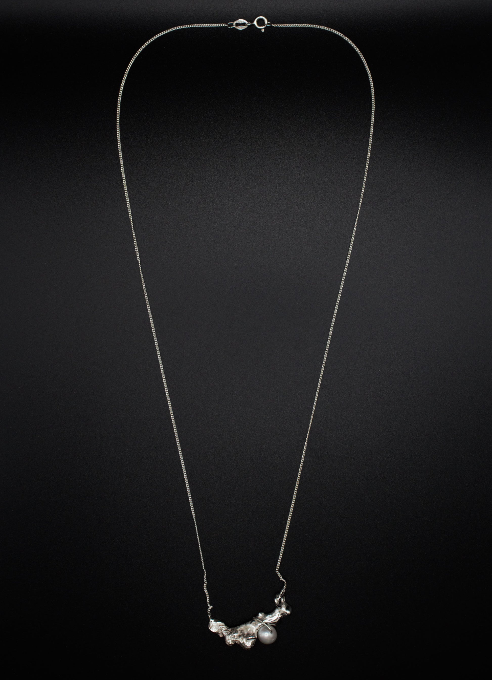 Materials: recycled sterling silver and copper alloy pendant, sterling silver 1mm flat curb chain, freshwater pearl