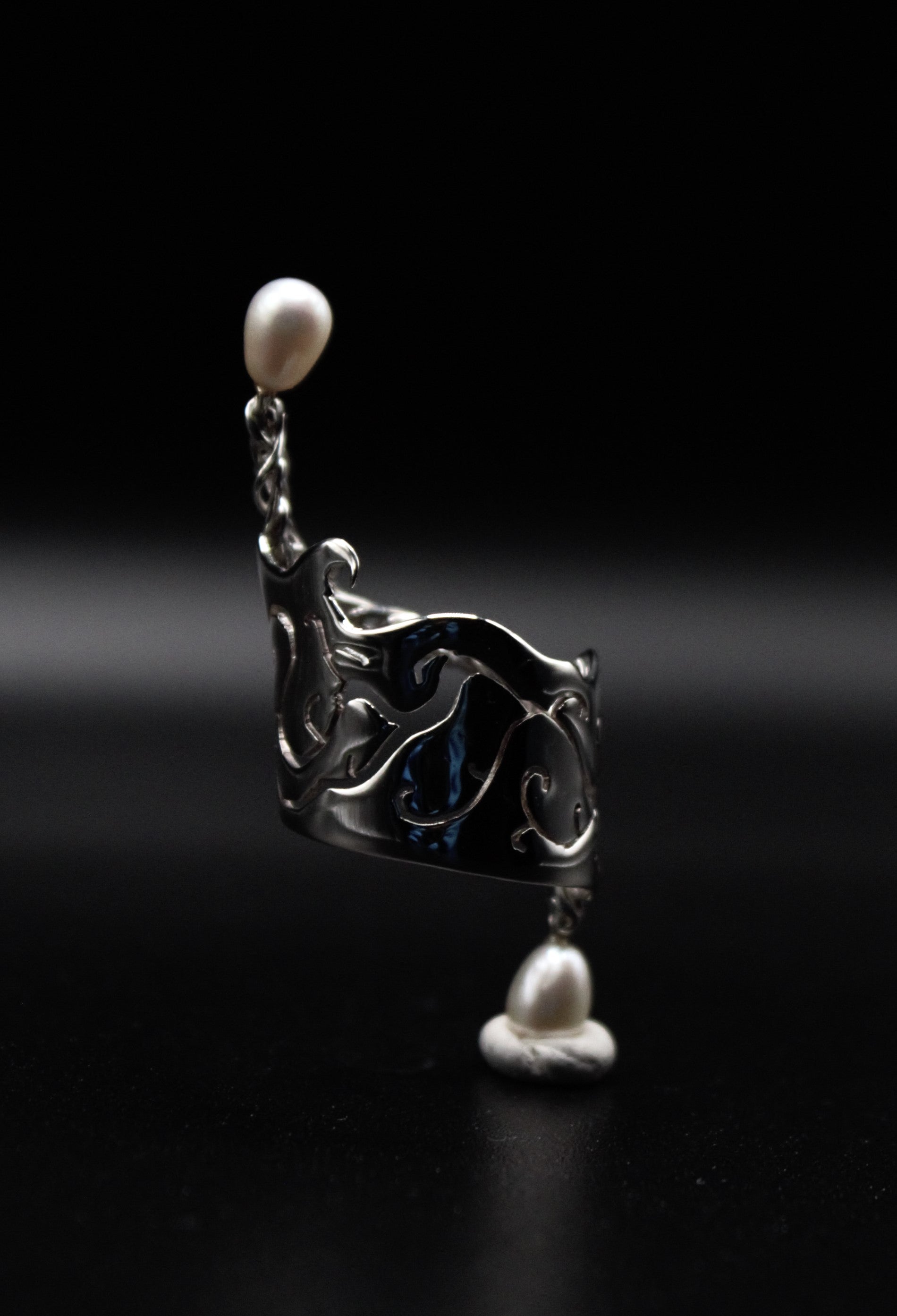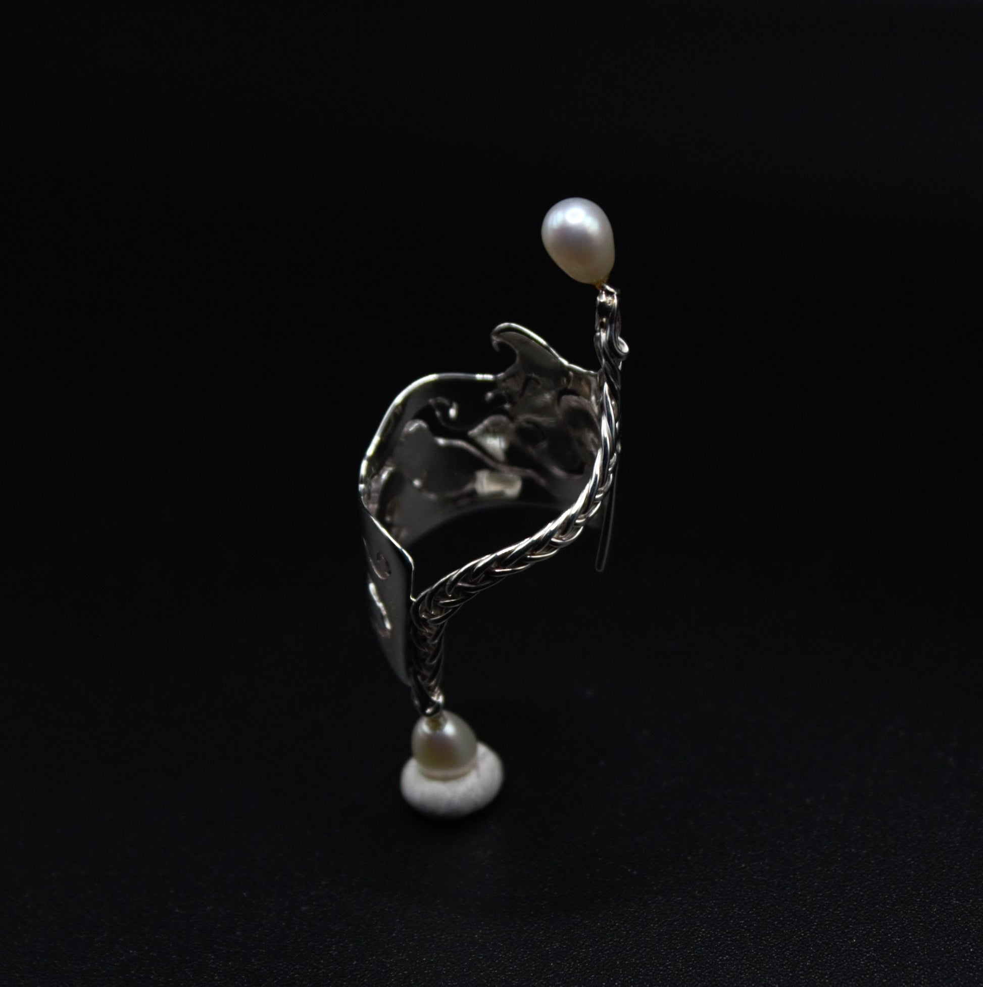 Lisaura is a one of a kind ring that was meticulously crafted to match your unique personality. The statement ring was hand cut in recycled sterling silver, with handwoven wire details and finished with two beautiful freshwater pearls. As there was only one made, it is a piece of wearable art that makes a totally unique jewellery gift for her.