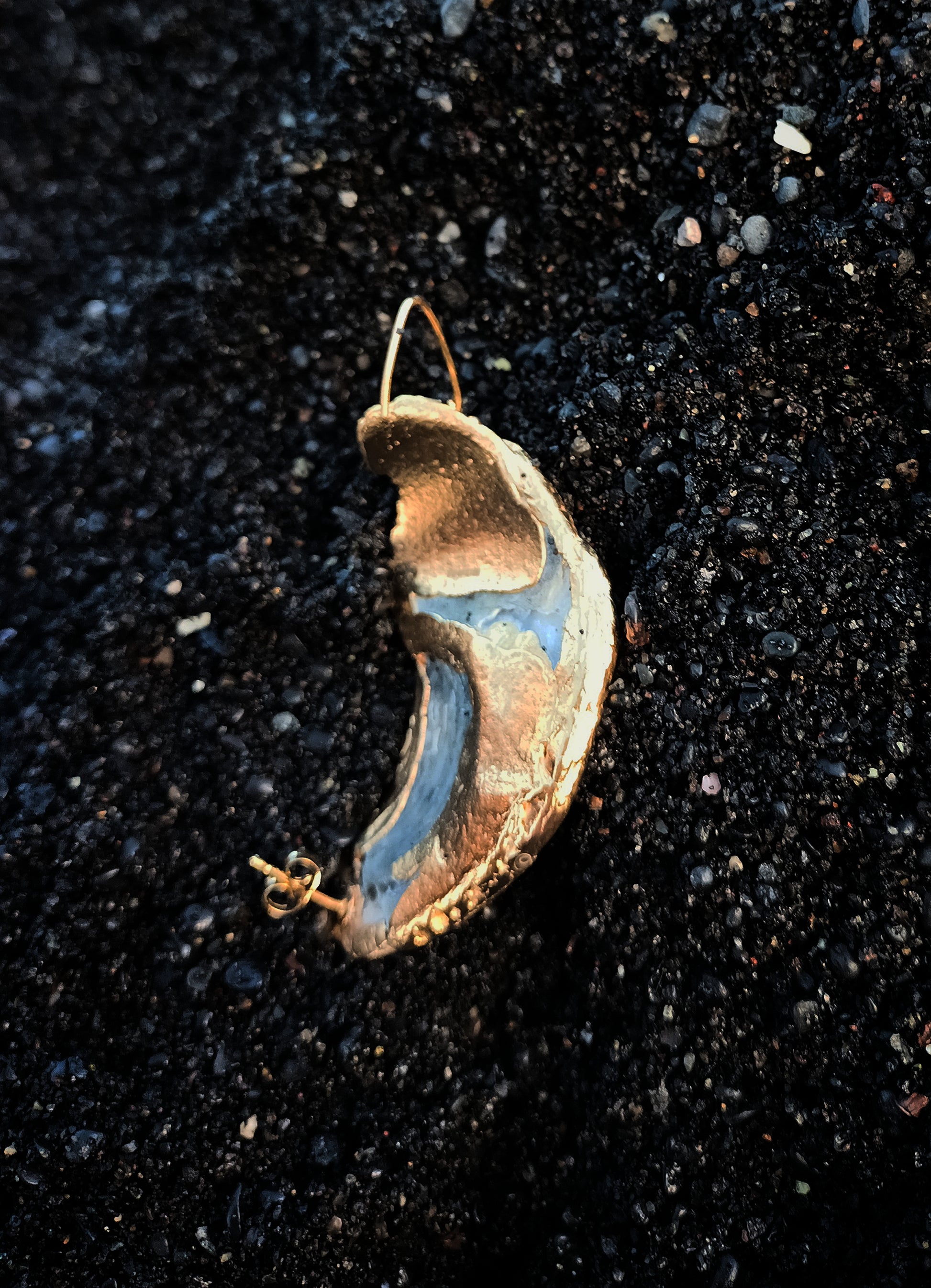A one of a kind ear cuff, Sereth is rebellious and luxurious at the same time. Handcrafted around a beautiful genuine marine rock from the British seaside, the abstract single earring is a work of wearable art. With blue and gold flashes of colour enhancing your whole face and unusual organic textures captivating the viewer, you will stand out on any occasion. This piece would make the perfect gift for a rebel woman or a bold nature lover.